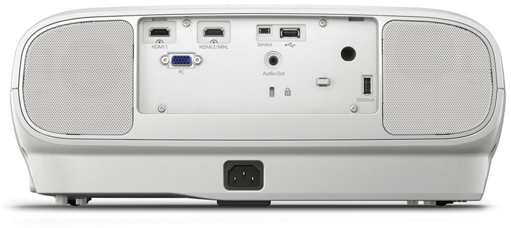USB 2.0 Type A, USB 2.0 Type B, Wireless LAN IEEE 802.11b/g/n (WiFi 4), VGA in, HDMI in (2x), Composite in, MHL, Cinch audio inEpson iProjection App